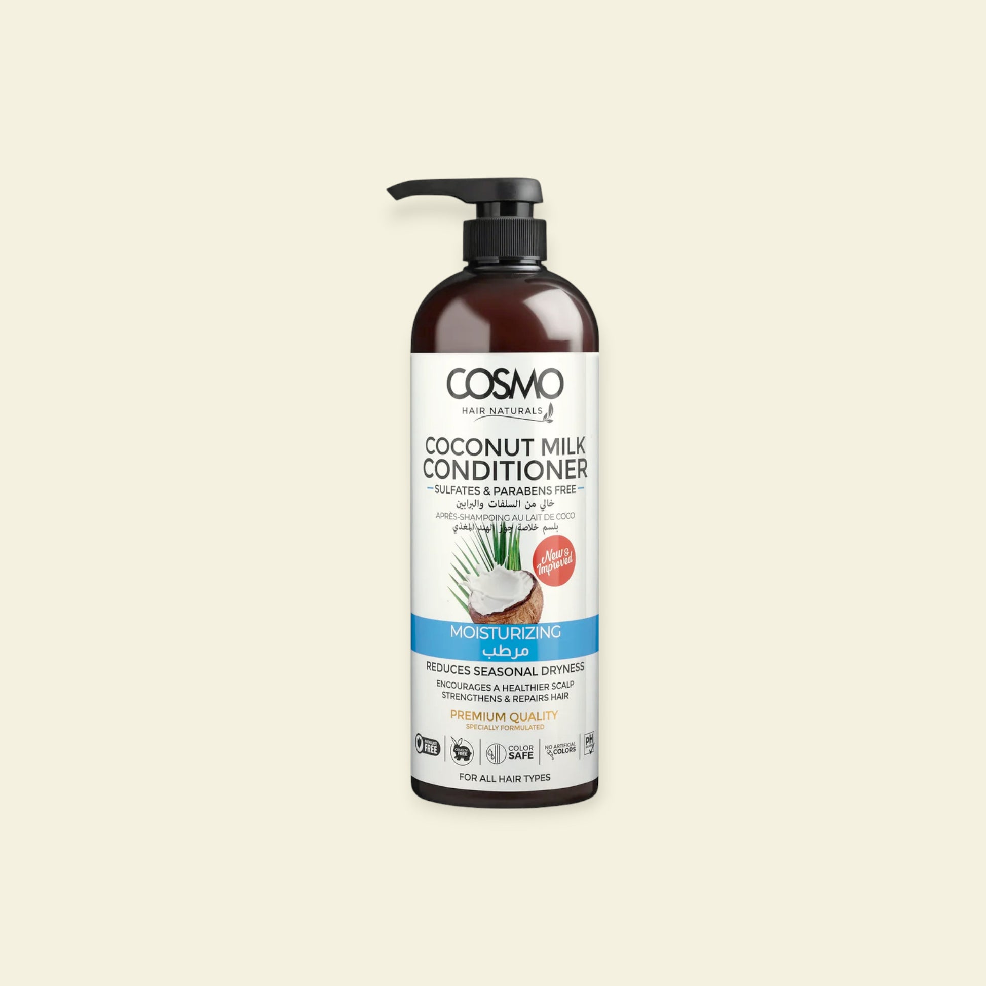 De Kokosmelk Conditioner 1000ML van COSMO is speciaal ontwikkeld voor droog, breekbaar en futloos haar. Deze sulfaatvrije conditioner is verrijkt met romige kokosmelk, wat diep hydrateert en helpt de vochtbalans van de hoofdhuid te behouden.